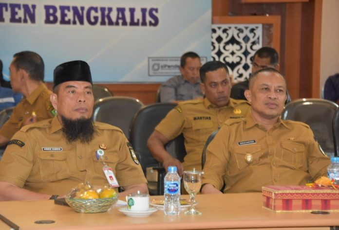 Turut mendampingi Wabup secara zoom meeting Perwakilan Dinas Ketahanan Pangan Kabupaten Bengkalis, Disperindag Kabupaten Bengkalis, Dinas Tanaman Pangan dan Hortikultura Kabupaten Bengkalis, Bagian Perekonomian Setda Kabupaten Bengkalis, Kepala Cabang Perum Bulog Bengkalis.(*Anuar)
