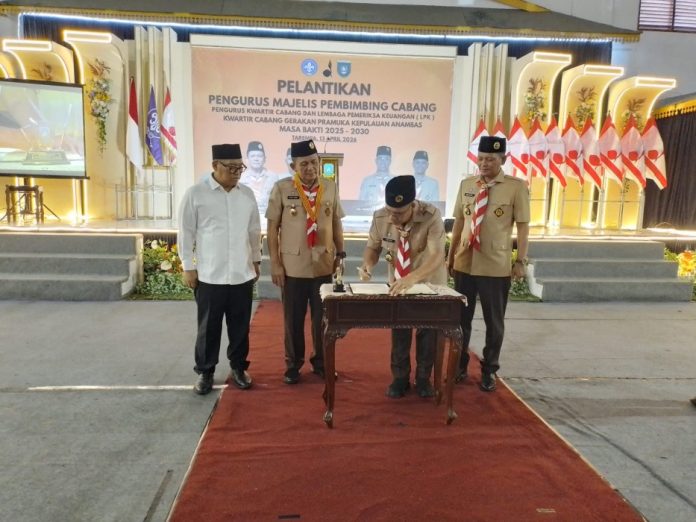 Serah terima tersebut ditandai dengan penandatanganan berita acara oleh Gubernur Kepri Ansar Ahmad dan Bupati Kepulauan Anambas Aneng di Gedung BPMS Tarempa, Senin (13/4/2026).