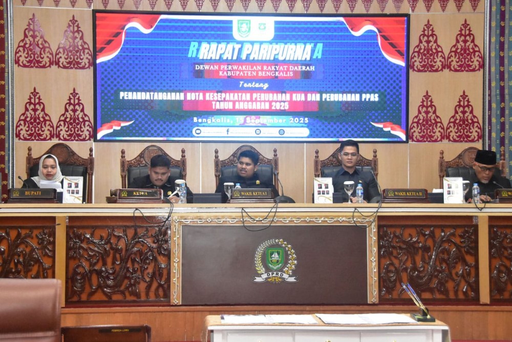 Suarasatu.co, Bengkalis – DPRD Kabupaten Bengkalis dan Pemerintah Kabupaten (Pemkab) Bengkalis secara resmi menandatangani nota kesepakatan Perubahan Kebijakan Umum Anggaran (KUA) dan Perubahan Prioritas Plafon Anggaran Sementara (PPAS) untuk Anggaran Pendapatan dan Belanja Daerah (APBD) Perubahan tahun 2025.