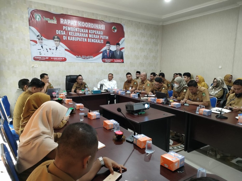 Suarasatu.co, Bengkalis – Bupati Bengkalis Kasmarni diwakili Sekretaris Daerah Kabupaten Bengkalis dr. Ersan Saputra membuka rapat koordinasi pembentukan Koperasi Desa/Kelurahan Merah Putih di Kabupaten Bengkalis, Senin, 21 April 2025 di ruang rapat kantor Dinas Koperasi dan UKM Jalan Pertanian Bengkalis.