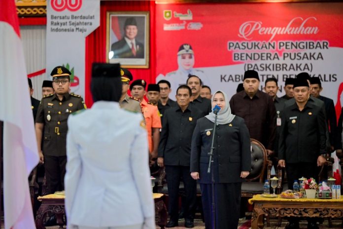 Suarasatu.co, Bengkalis – Bupati Bengkalis, Kasmarni, mengukuhkan 36 putra-putri terbaik Kabupaten Bengkalis sebagai Pasukan Pengibar Bendera Pusaka (Paskibraka) Tahun 2025. Upacara pengukuhan ini dilaksanakan di Pendopo Wisma Daerah Sri Mahkota Bengkalis pada Jumat malam, 15 Agustus 2025.