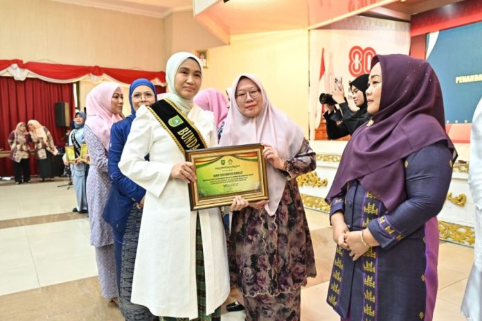 Suarasatu.co, Bengkalis – Bunda PAUD Kabupaten Bengkalis, Kasmarni, menerima penghargaan sebagai Bunda PAUD Inspirator Parenting Positif. Penghargaan ini diserahkan langsung oleh Bunda PAUD Provinsi Riau, Henny Sasmita Wahid, dalam acara Apresiasi Bunda PAUD Berprestasi yang diadakan di Balai Serindit, Gedung Daerah Gubernuran Provinsi Riau, pada Jumat (26/9/2025).