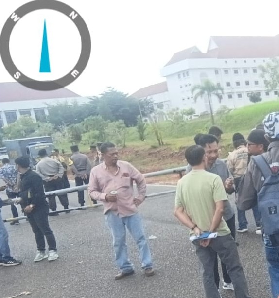 Massa juga membentangkan spanduk bertuliskan, “Desak Transparansi Dana Publikasi Tahun 2023 Rp14 Miliar dan Tahun 2024 Rp11 Miliar di Diskominfotik Kepri.”