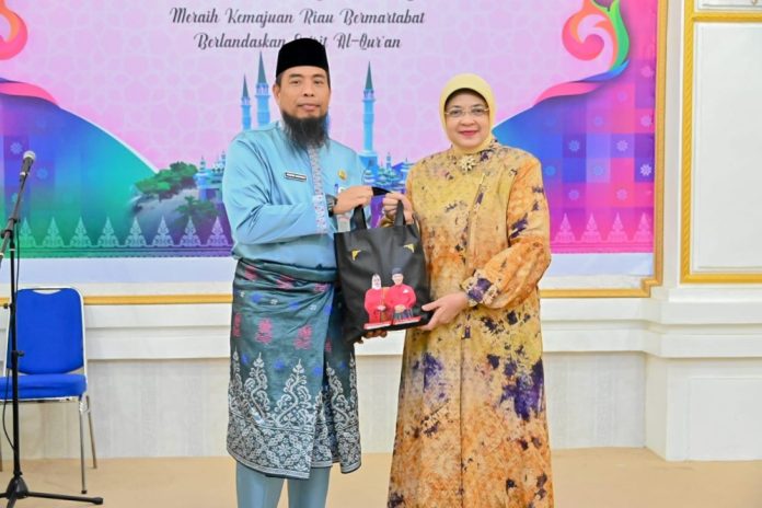 Suarasatu.co, Anambasnews.com – Pemerintah Kabupaten Bengkalis secara resmi melepas kepulangan Istri Menteri Agama Republik Indonesia, Helmi Halimatul Udhmah, yang telah menuntaskan tugasnya sebagai Dewan Pengawas Musabaqah Tilawatil Qur’an (MTQ) ke-43 Tingkat Provinsi Riau di Kabupaten Bengkalis.