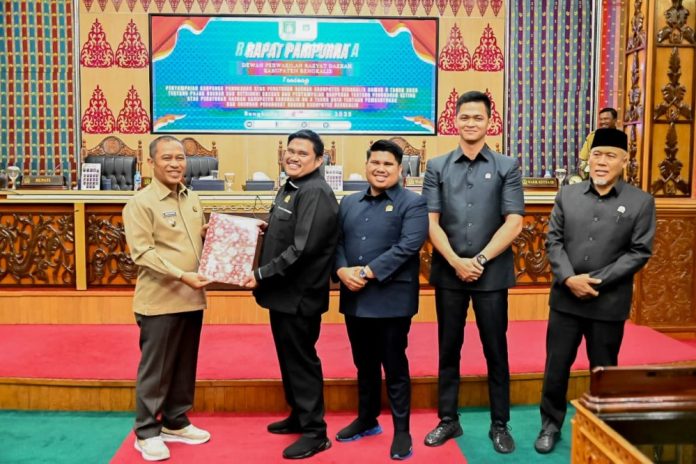 Rapat Paripurna DPRD dipimpin oleh Ketua DPRD Bengkalis, Septian Nugraha, dan dihadiri oleh Wakil Ketua I, M. Arsya Fadillah, Wakil Ketua II, Hendrik Fernanda, Wakil Ketua III, H. Misno, anggota DPRD, pejabat pimpinan tinggi pratama, serta tamu undangan lainnya.(*Anuar)