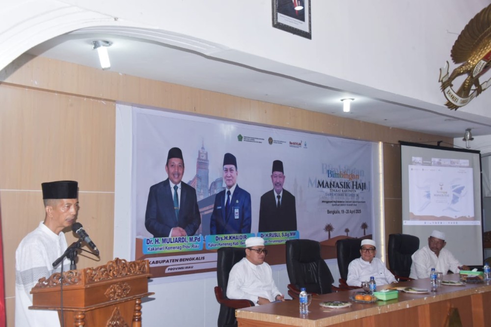 Dalam sambutan tertulis Bupati Bengkalis yang dibacakan oleh Johansyah, Pemkab Bengkalis menyampaikan apresiasi kepada Kantor Kementerian Agama Kabupaten Bengkalis beserta seluruh jajaran yang telah menyelenggarakan kegiatan ini. Bimbingan manasik haji ini bertujuan untuk memberikan wawasan, pengetahuan, serta pembentukan sikap yang baik dalam melaksanakan ibadah haji.