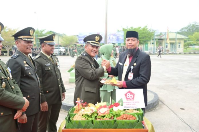 Suarasatu.co, Bengkalis – Asisten Pemerintahan dan Kesejahteraan Rakyat, Andris Wasono, mewakili Bupati Bengkalis menghadiri upacara peringatan Hari Ulang Tahun (HUT) Tentara Nasional Indonesia (TNI) ke-80 di Lapangan Upacara Kodim 0303/Bengkalis, Sabtu, 5 Oktober 2025.