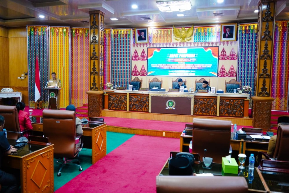 Suarasatu.co, Bengkalis – Pemerintah Kabupaten (Pemkab) Bengkalis, melalui Staf Ahli Bupati Bidang Pemerintahan, Hukum, dan Politik, Ed Efendi, menyampaikan jawaban atas pandangan umum fraksi DPRD terkait Rancangan Peraturan Daerah (Ranperda) perubahan atas Perda Nomor 8 Tahun 2023 tentang Pajak Daerah dan Retribusi Daerah. Rapat paripurna berlangsung di Ruang Sidang DPRD Bengkalis, Senin (8/9/2025) malam.