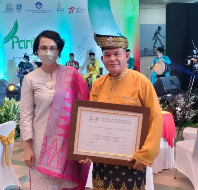 Tokoh budaya Melayu asal Kota Tanjungpinang, H. Saparillis, menerima Sertifikat Pemantun Nusantara dari Intangible Cultural Heritage (ICH)-UNESCO, yang diserahkan secara langsung oleh Sekretaris Jenderal Kementerian Pendidikan, Kebudayaan, Riset dan Teknologi RI, Ir. Suharti, M.A., Ph.D.