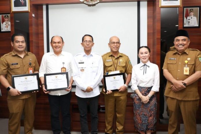 Suarasatu.co, Batam – Wali Kota Batam, Amsakar Achmad, dan Wakil Wali Kota, Li Claudia Chandra, memberikan penghargaan kepada sejumlah Organisasi Perangkat Daerah (OPD) yang dinilai berprestasi dalam pengelolaan arsip di lingkungan Pemerintah Kota (Pemko) Batam. Penghargaan ini diserahkan dalam Rapat Koordinasi (Rakor) Pengawasan Kearsipan Internal Tahun 2025, Senin (27/10/2025).