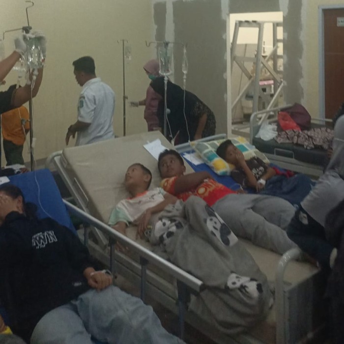 “Awalnya laporan yang kami terima ada 11 anak, terdiri dari TK/PAUD, SD, dan SMP. Namun sekarang jumlah pasien yang masuk ke RSUD sudah mencapai 73 orang,” jelasnya.