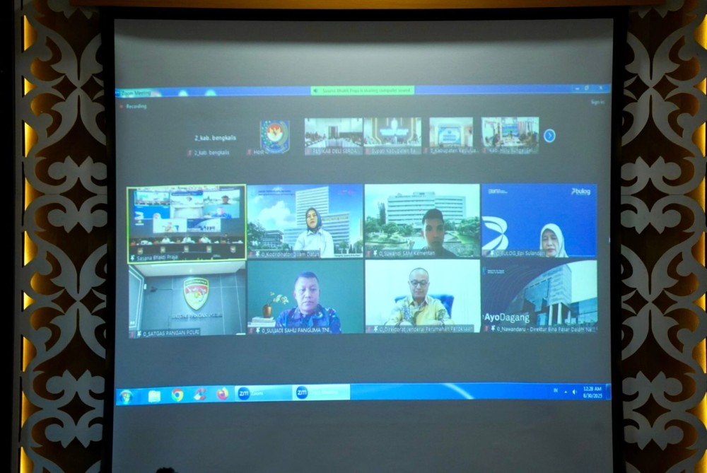 Rakor ini dilaksanakan melalui zoom meeting di Ruang Hang Jebat, Kantor Bupati Bengkalis, pada Selasa, 2 September 2025.