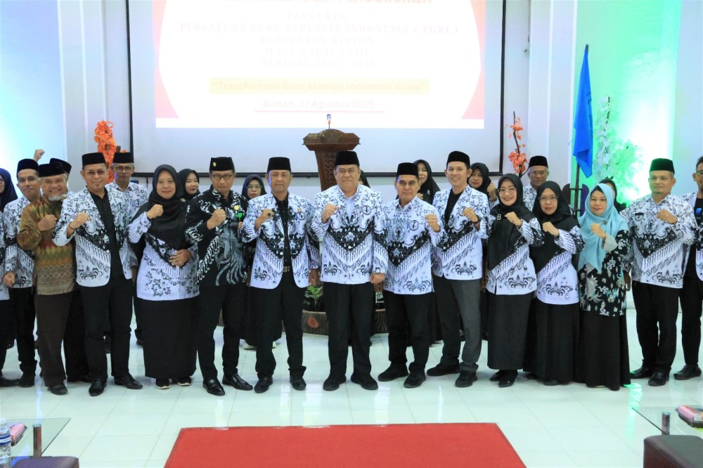 Suarasatu.co, Bintan – Sekretaris Daerah (Sekda) Kabupaten Bintan menghadiri pelantikan Pengurus PGRI (Persatuan Guru Republik Indonesia) Kabupaten Bintan Masa Bakti XXIII Tahun 2025-2030. PGRI diharapkan menjadi wadah perjuangan, pengabdian, serta sarana mempererat silaturahmi dan solidaritas antar guru.