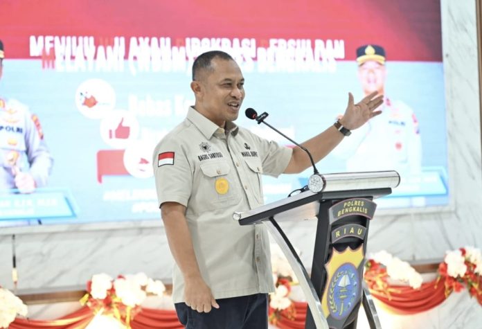 Suarasatu.co, Bengkalis – Wakil Bupati Bengkalis, Dr. H. Bagus Santoso, mengapresiasi pencanangan pembangunan Zona Integritas menuju Wilayah Birokrasi Bersih dan Melayani (WBBM) oleh Polres Bengkalis. Acara ini dilaksanakan pada Sabtu, 16 Agustus 2025.